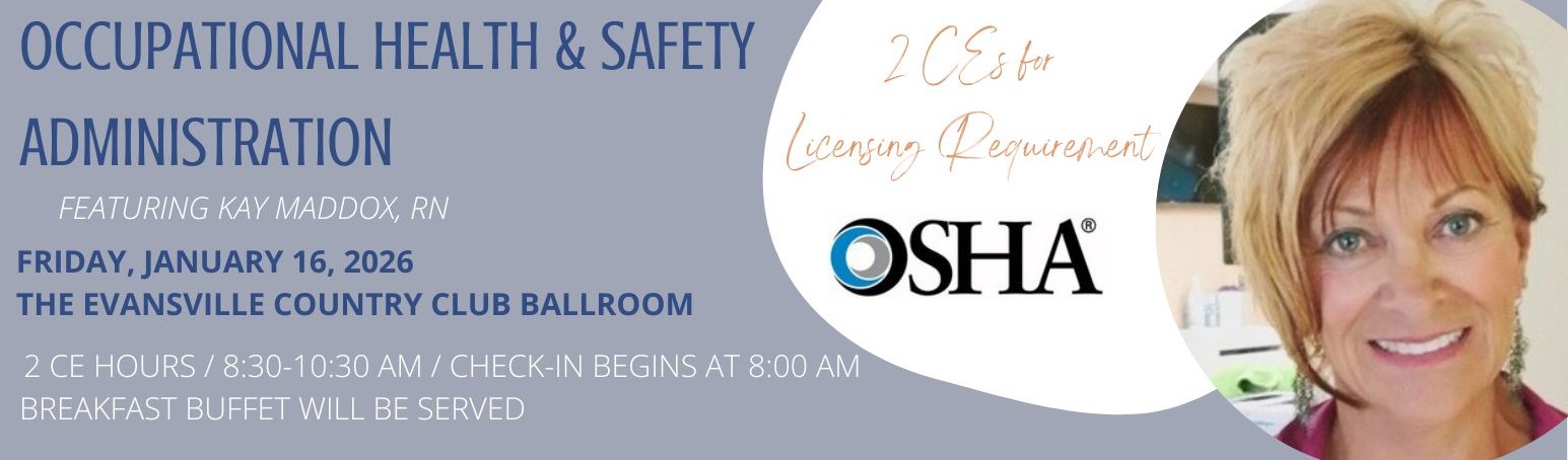 Join us for an informative session with Kay Maddox, RN, covering OSHA’s Bloodborne Pathogens Standards, Hazardous Chemical Standards, and Infection Control. This 2-hour course fulfills your licensing CE requirement and will review universal precautions, PPE, documentation, respiratory protection, and safe disposal practices.